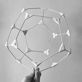 In geometry, a Platonic solid is a convex, regular polyhedron in three-dimensional space. Referred to as sacred geometry, Plato associated these forms with earth, water, fire, air, and ether. In their installation Divine Plan, the artists use interconnected icosahedrons (a water element denoting human emotions) to focus on co-existence and multiple realities, the interlinked multiplicity reflecting one of the central ideas of a common ground.